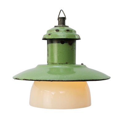 Mint Green Enamel Opaline Glass Industrial Ceiling Lamp 1950s For Sale At Pamono