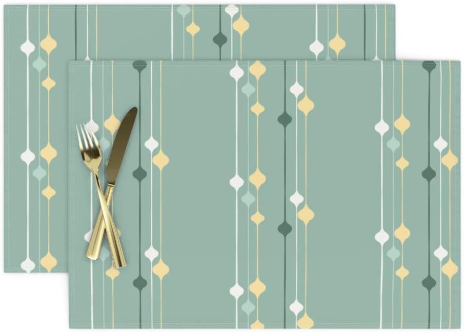 Cloth Placemats Mid Century Mod Lava Lamps Stripes Mint Green Set