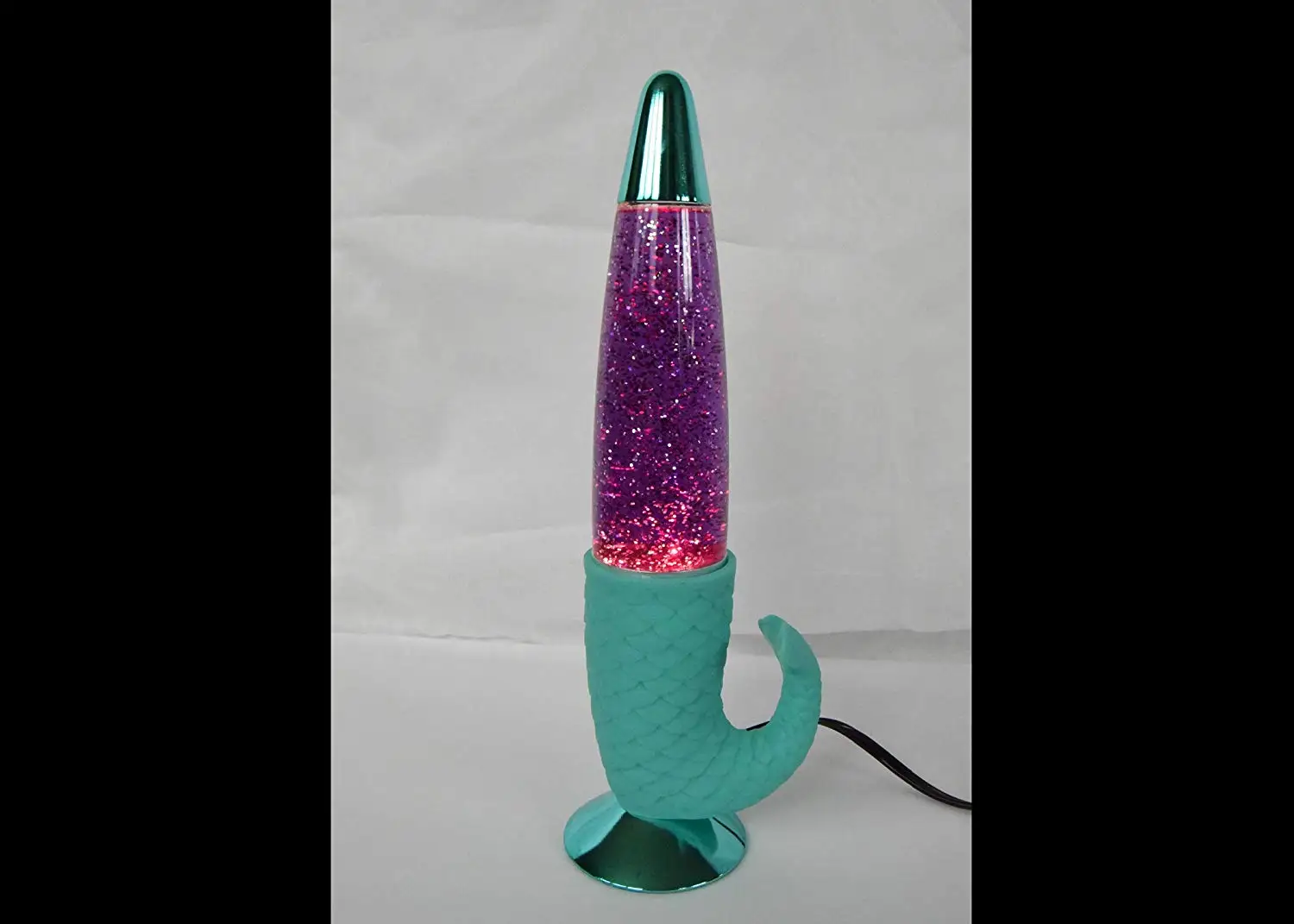 Mermaid Tail Glitter Lava Lamp With Mint Green Base And Pink