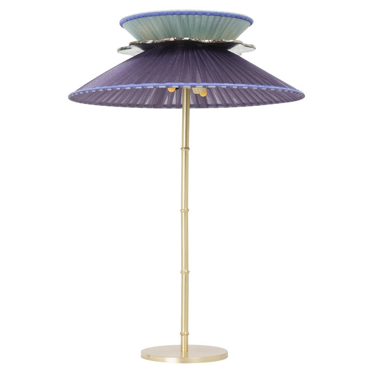 Daisy Table Lamp In Satin Brass Violet Mint Silk Lampshade Silver Glass Necklace For Sale At 1stdibs