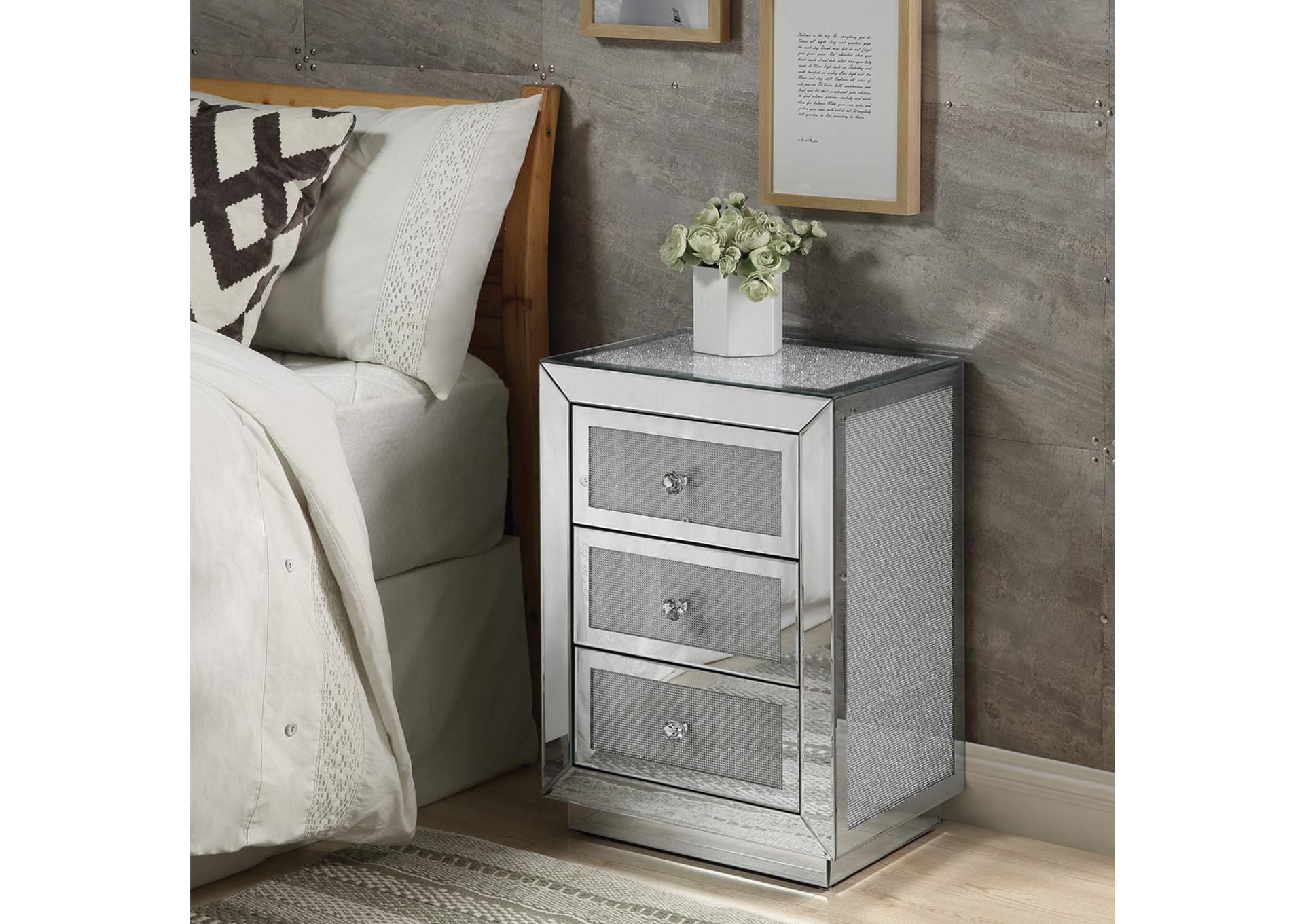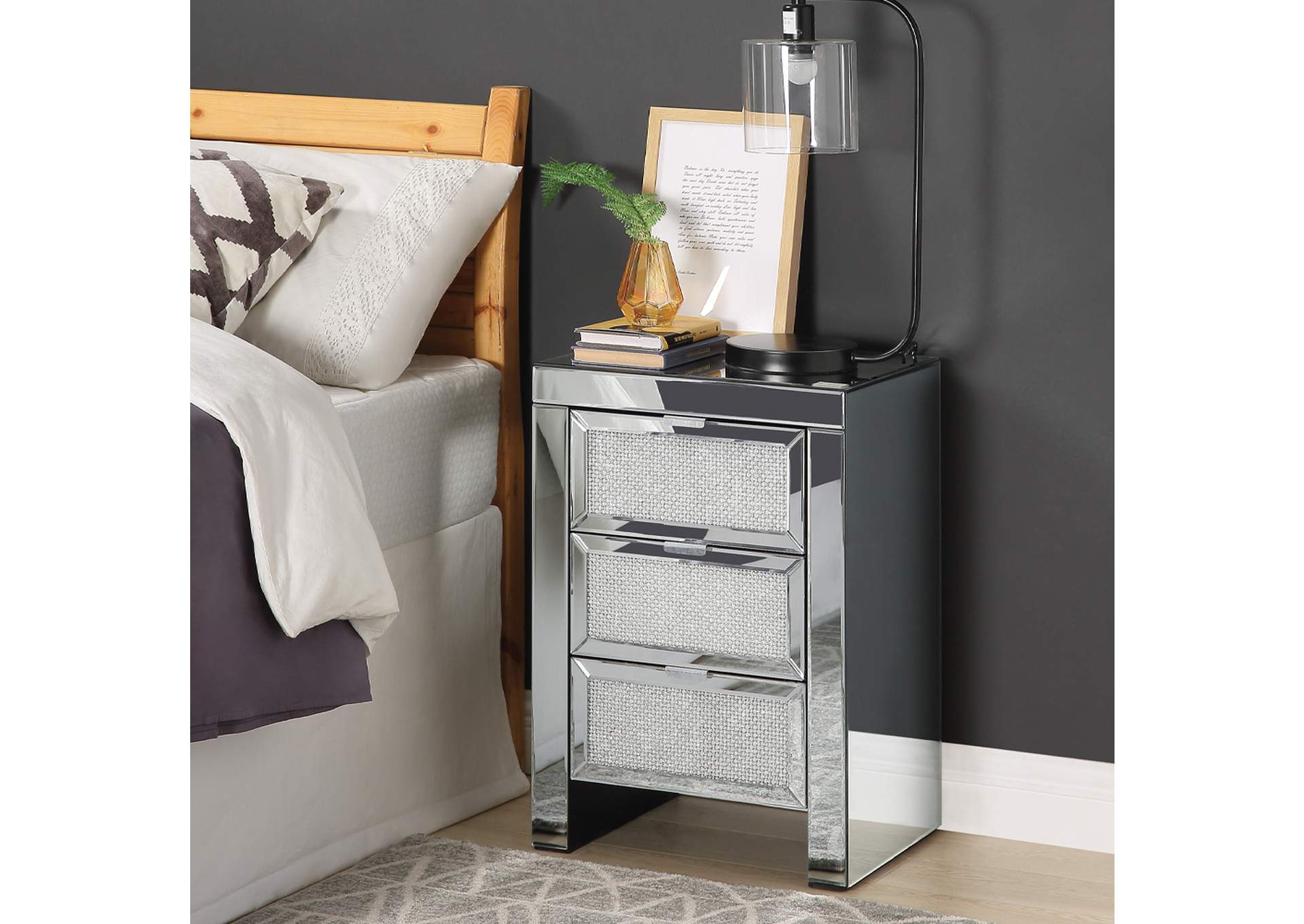 Modern 3 Drawer Mirrored End Table Ga Home Nightstand Mirror