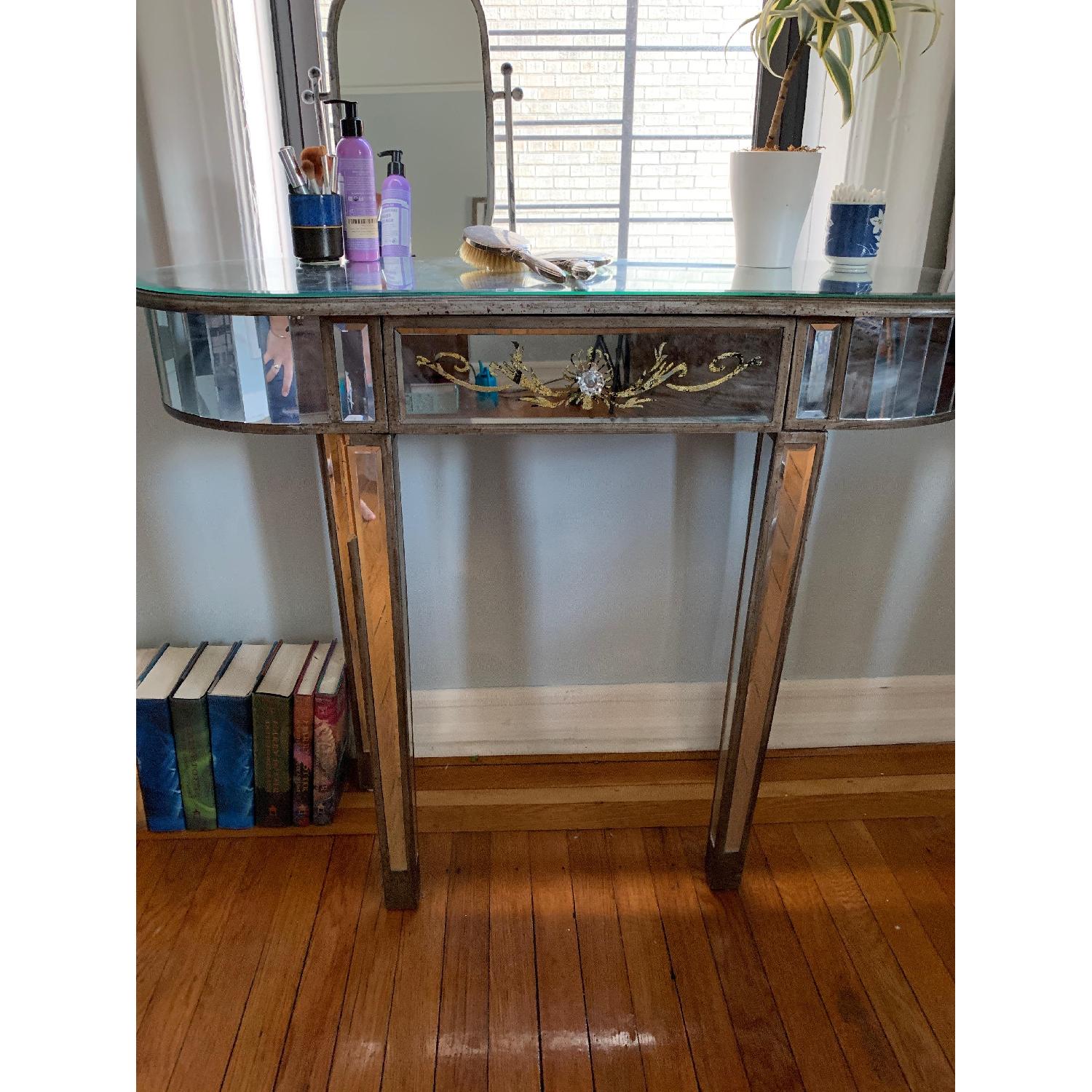 Large Silver Tone Mirror Accent Table C21