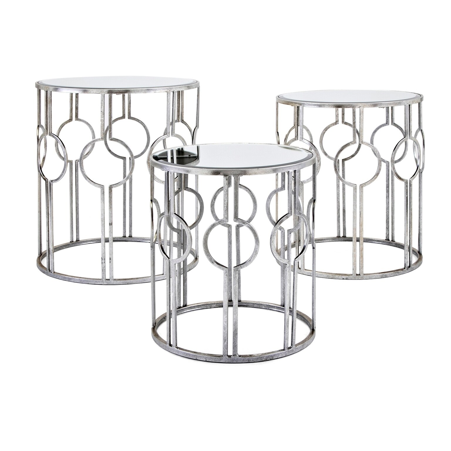 Chic Metal Round Nesting Accent Table With Mirror Top Buy Chic