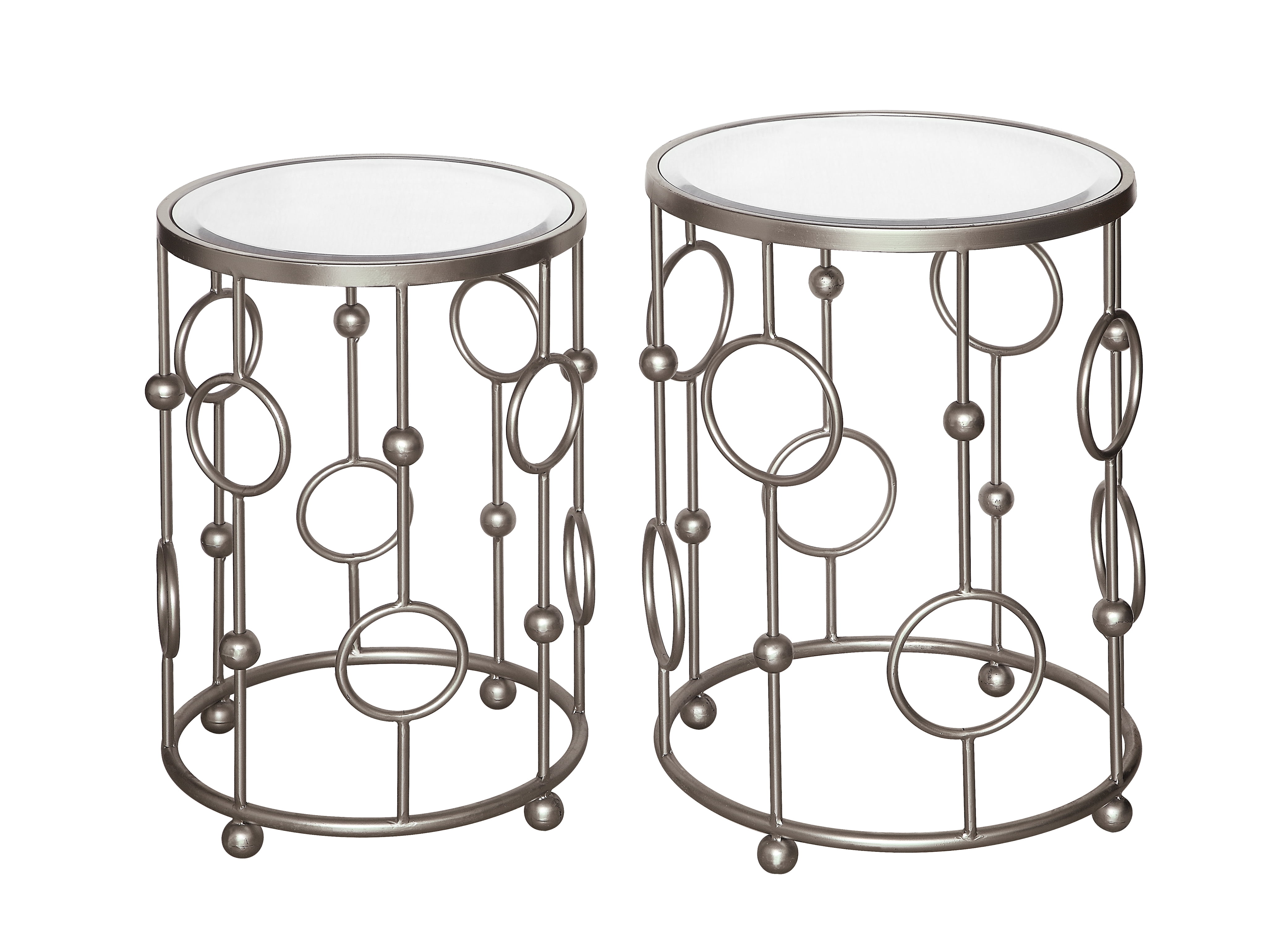James Mirror Top Set Of 2 Accent Tables In Champagne Steel
