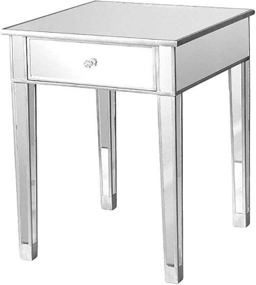 Amazon Com Wood And Mirror Accent Table Matte Silver Finish With