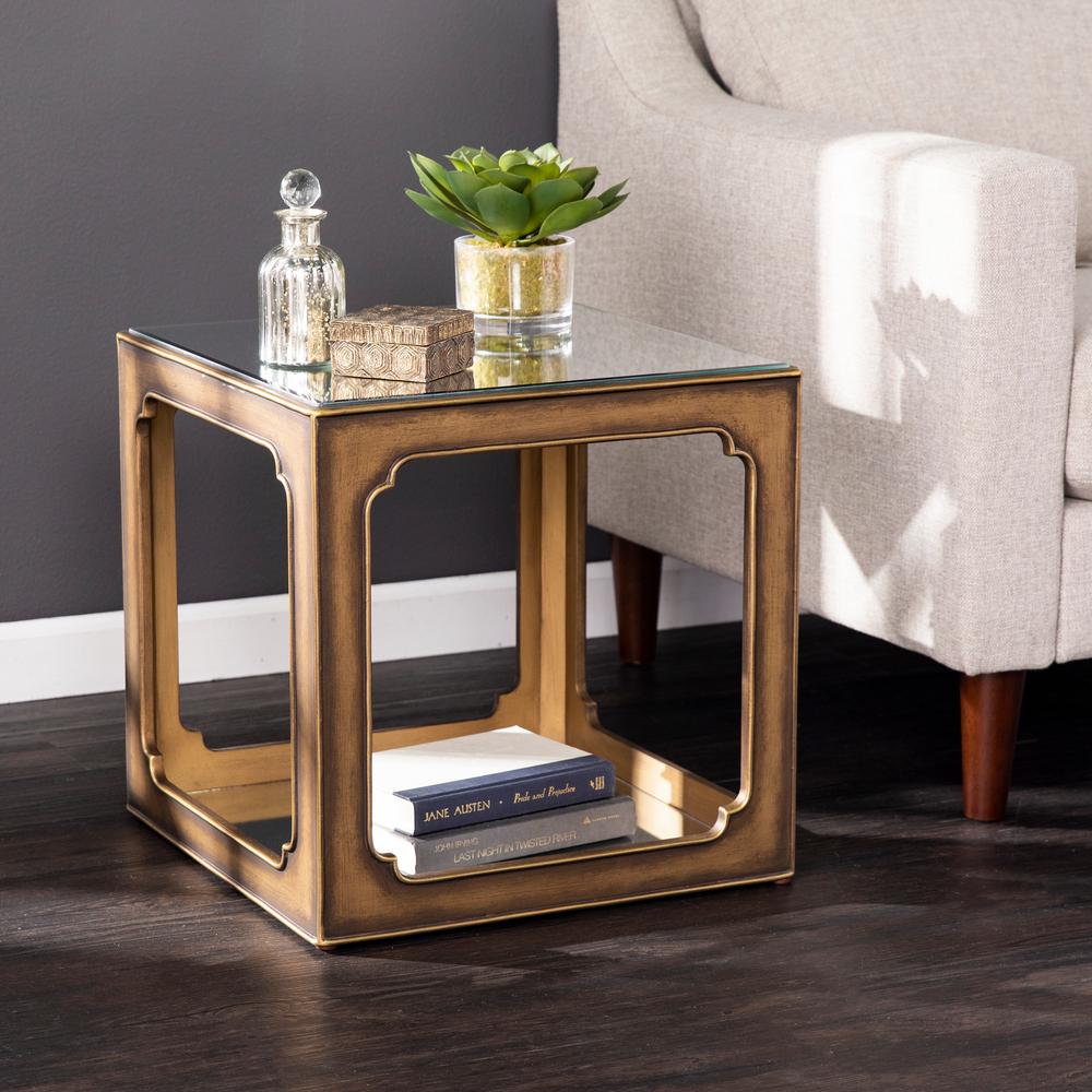 Timpson Metal And Antiqued Mirror Accent Table Golden Bronze