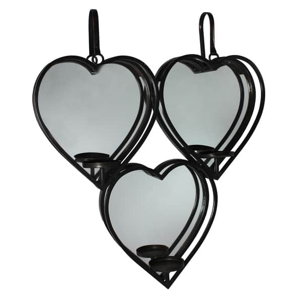 Shop Three Hearts Mirrored Metal Wall Art Candle Sconce Set On Sale Overstock 28250370