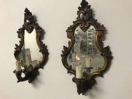Italian Wooden Sconces With Mirrors 1920s Set Of 2 For Sale At Pamono