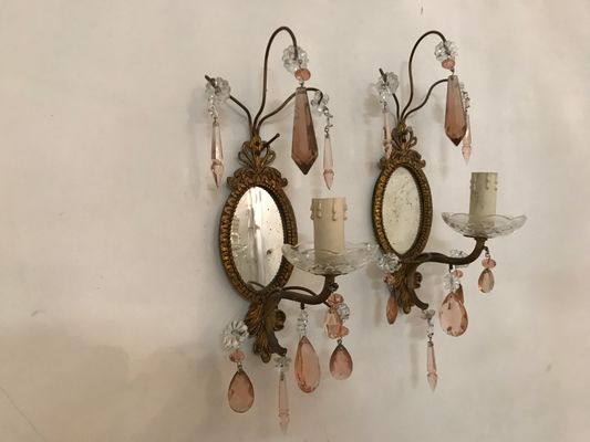 Vintage Mirror Sconces With Pink Crystals Set Of 2 For Sale At Pamono