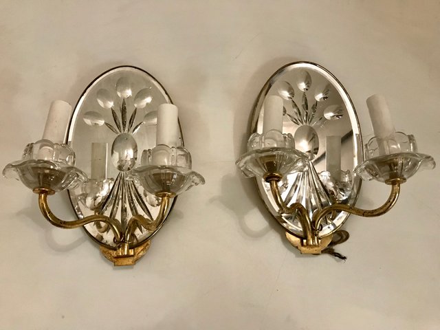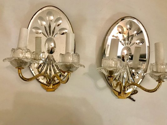 Vintage Mirror Crystal Sconces 1950s Set Of 2 For Sale At Pamono