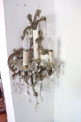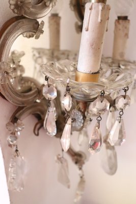 Antique Wall Mirror And Crystal Drop Sconces Set Of 2 For Sale At Pamono