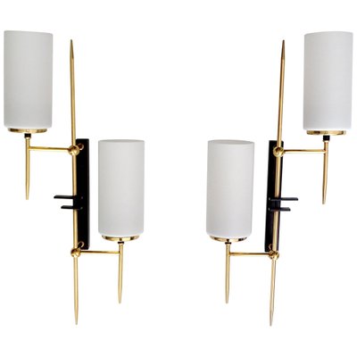 French Brass Glass Mirror Sconces From Lunel 1960s Set Of 2 For Sale At Pamono