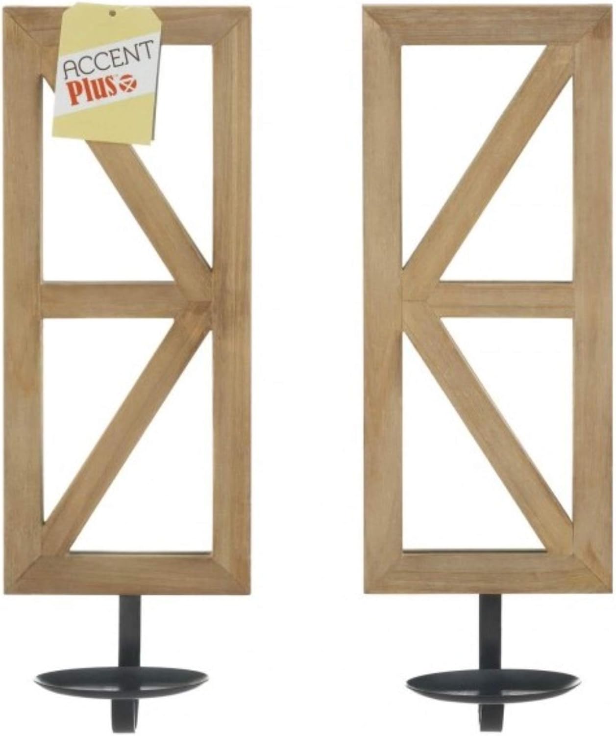 Amazon Com Accent Plus Mirrored Candle Sconce Set With Wood Frames Kitchen Dining