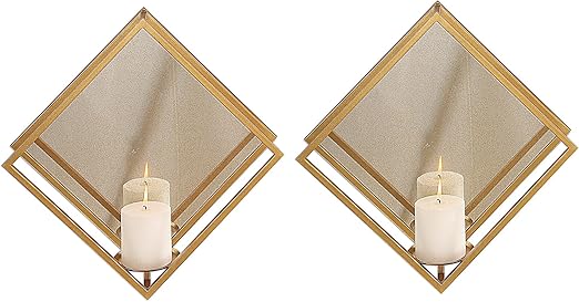 Amazon Com My Swanky Home Minimalist Gold Mirrored Wall Candle Sconce Set 2 Diamond Square Metal Simple Home
