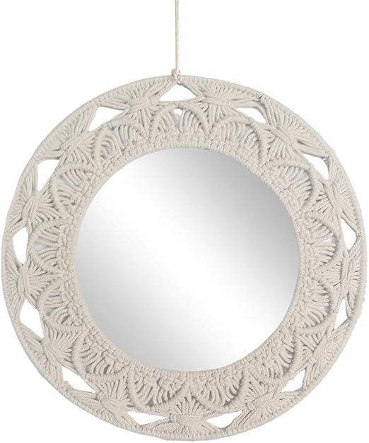 Round Lace Wall Hanging Mirror Art Decor Hand Made Cotton Rope