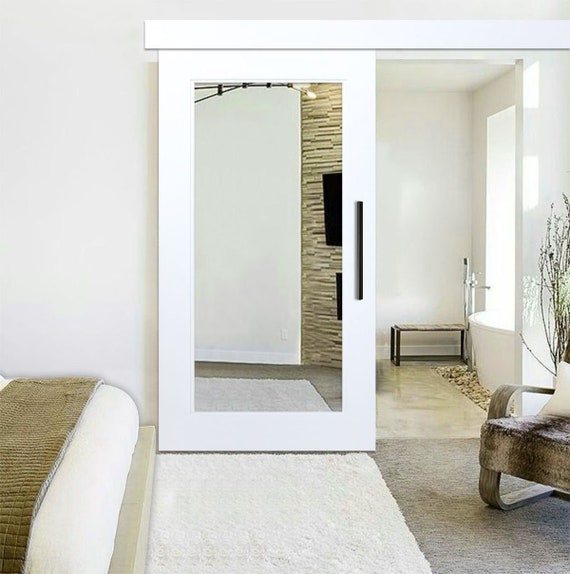 Mirrored Mdf Sliding Barn Door With Mirror Insert Hardware Etsy
