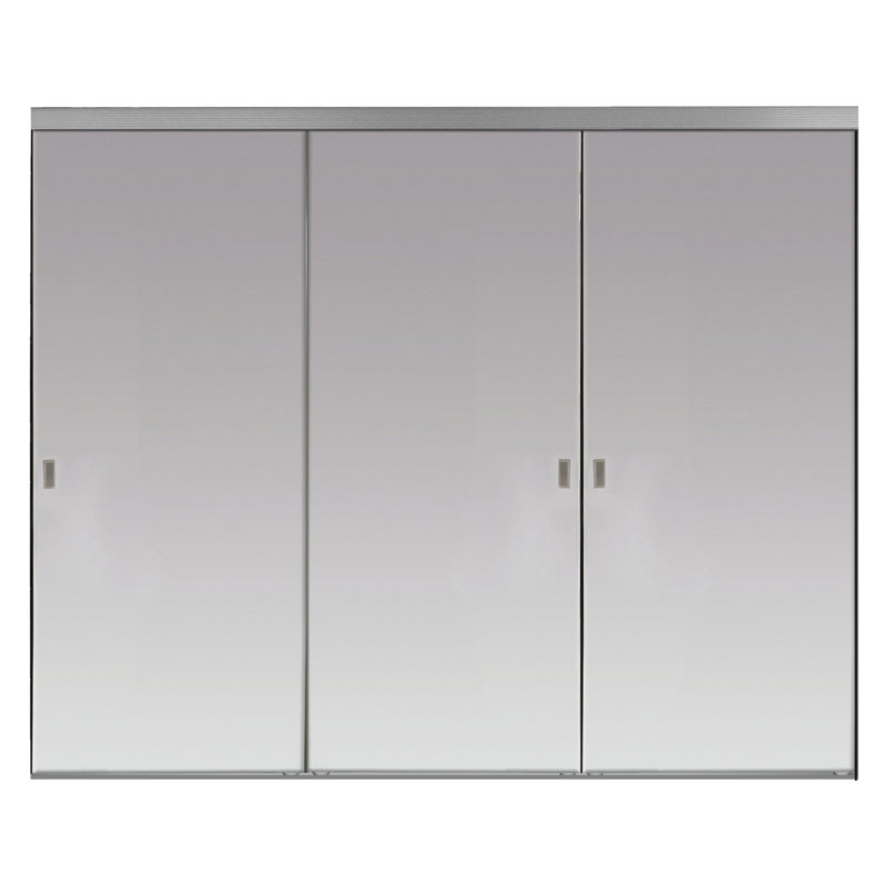Three Panel Closet Doors With Mirror On Triple Track Sliding
