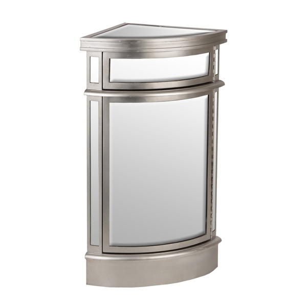 680601 Howard Miller Silver Finish Mirrored Corner Curio Cabinet