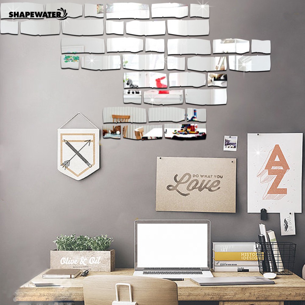 Shapewater 24 Pcs Modern Bricks Mirror Wall Decoration Shopee