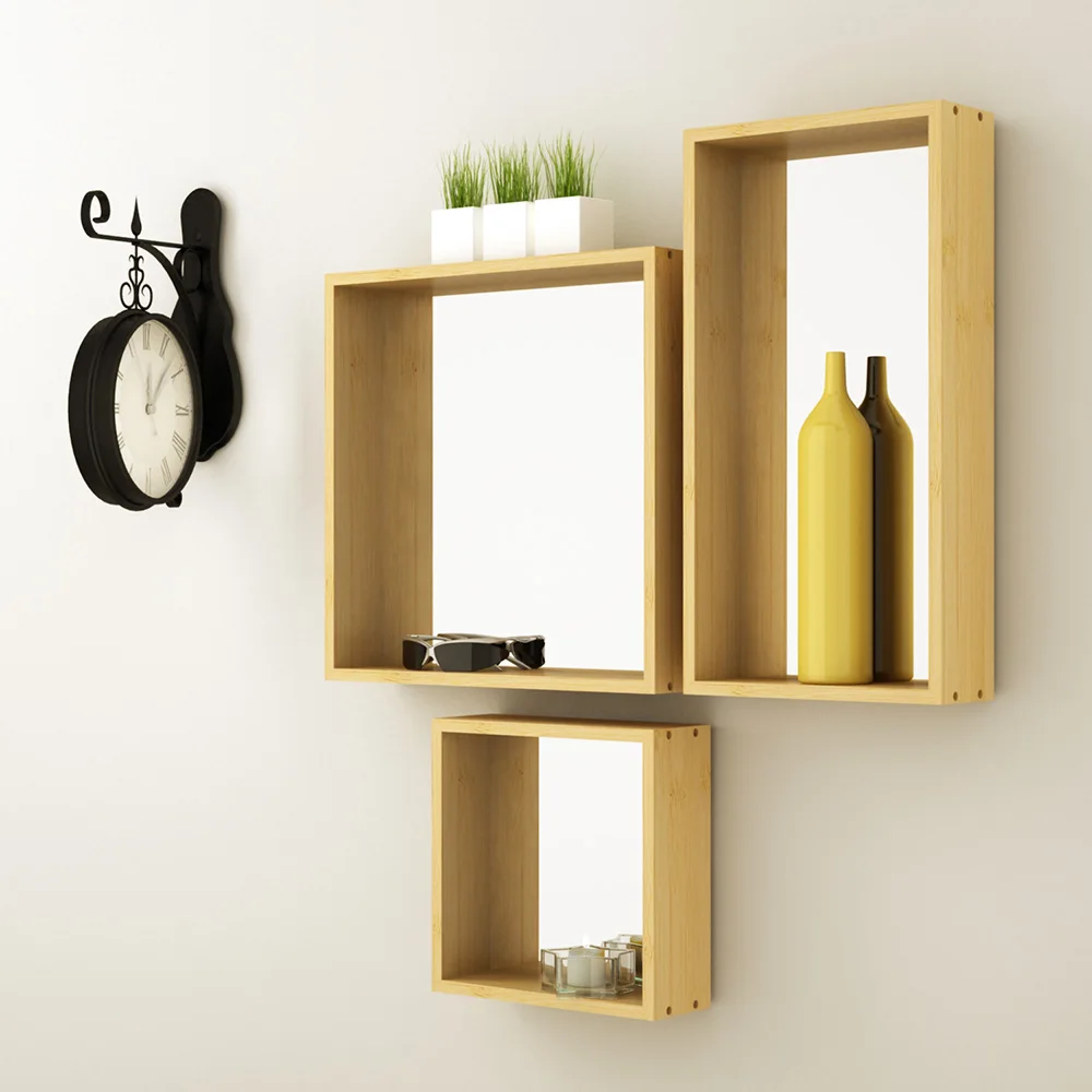 Bamboo Cube Wall Art Mirror Cube Wall Decor Modern Wall
