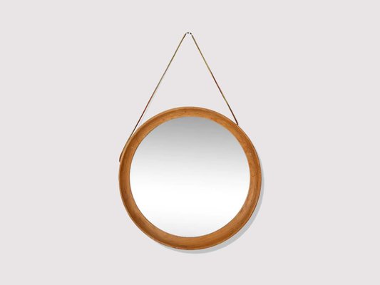 Teak Mirror With Leather Strap Denmark 1960s For Sale At Pamono