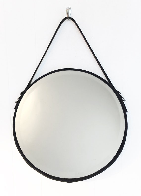 Hanging Round Mirror Black Tan Leather Strap Interiores