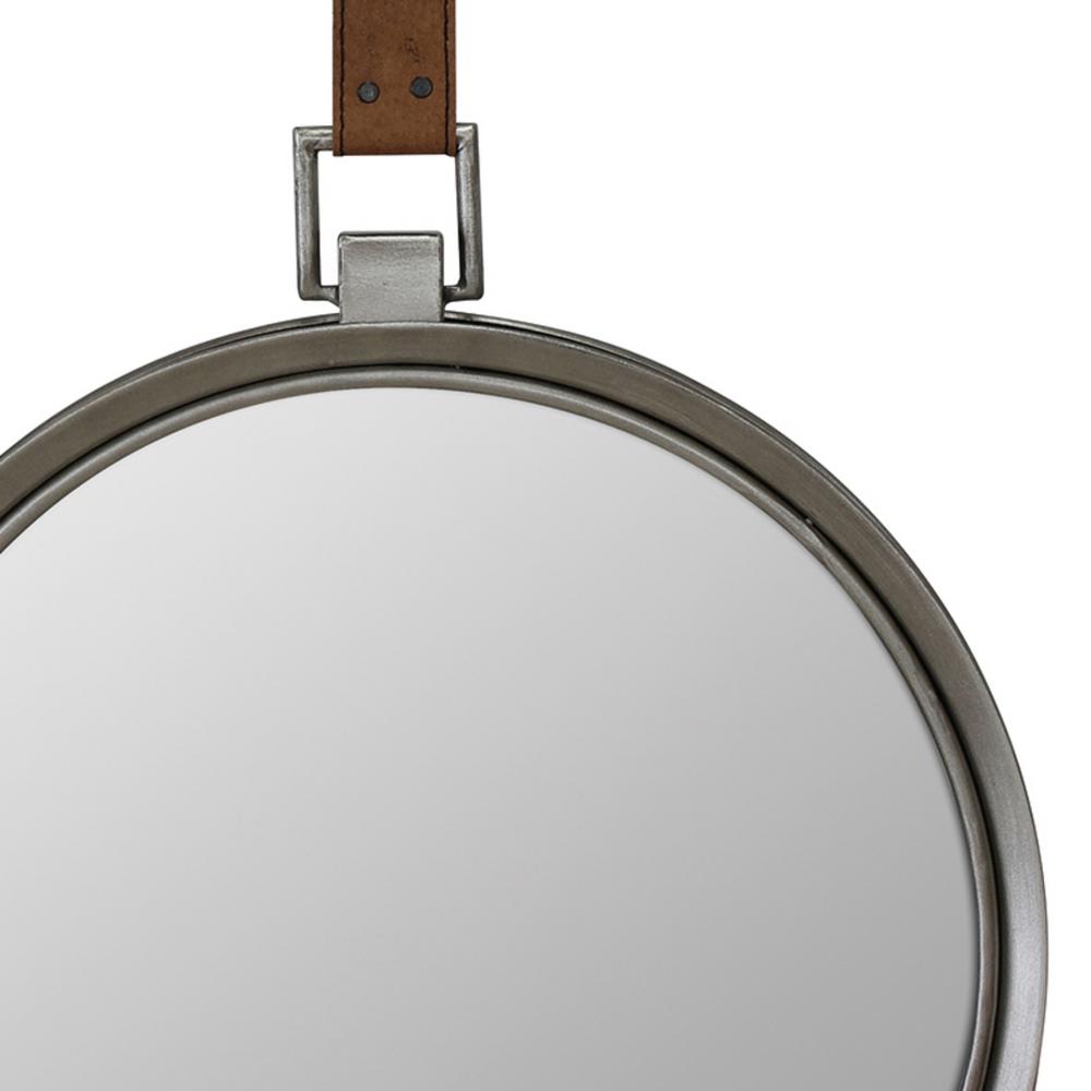 Contemporary Silver Style Wall Hanging Mirror Leather Strap Round