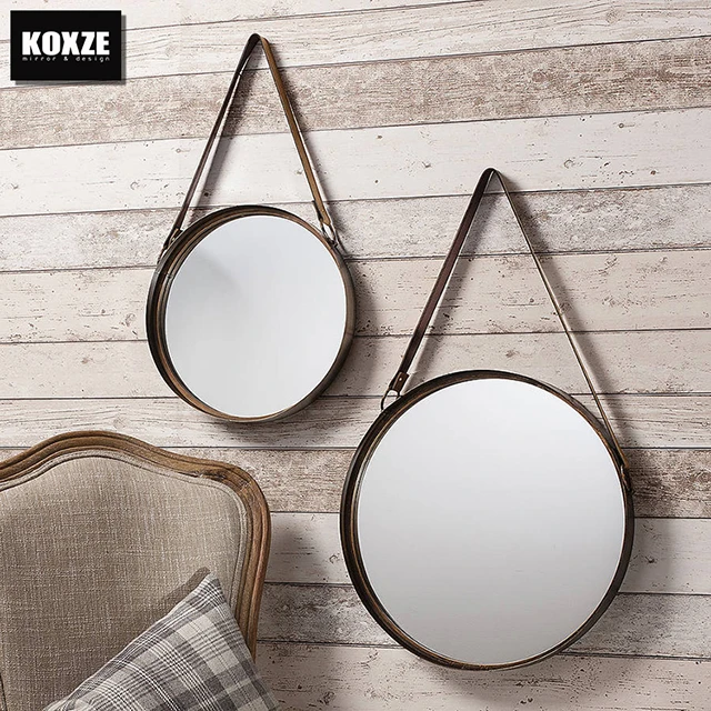 Metal Hanging Mirror Frame With Leather Strap Buy Metal Hanging