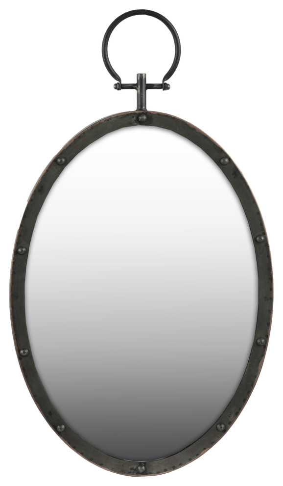 Oval Metal Wall Mirror With Metal Hanger Gloss Black 14 25