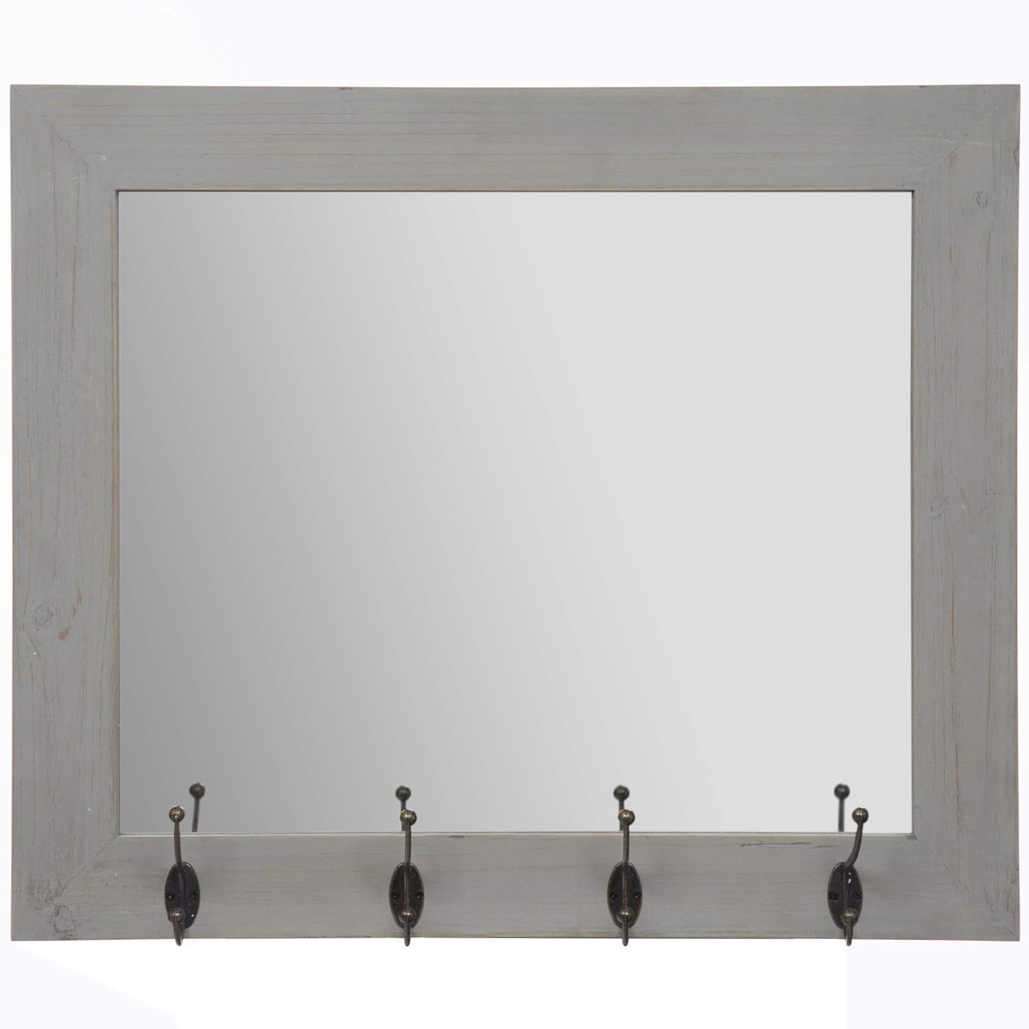 Pinnacle Rustic Entryway Hooks Rectangular Gray Decorative Mirror