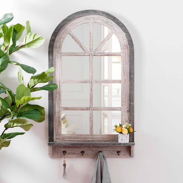 Black And White Arch Mirror With Shelf And Hooks Kirklands