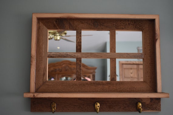 Barnwood Window Mirror 6 Panes With Shelf Hooks Etsy
