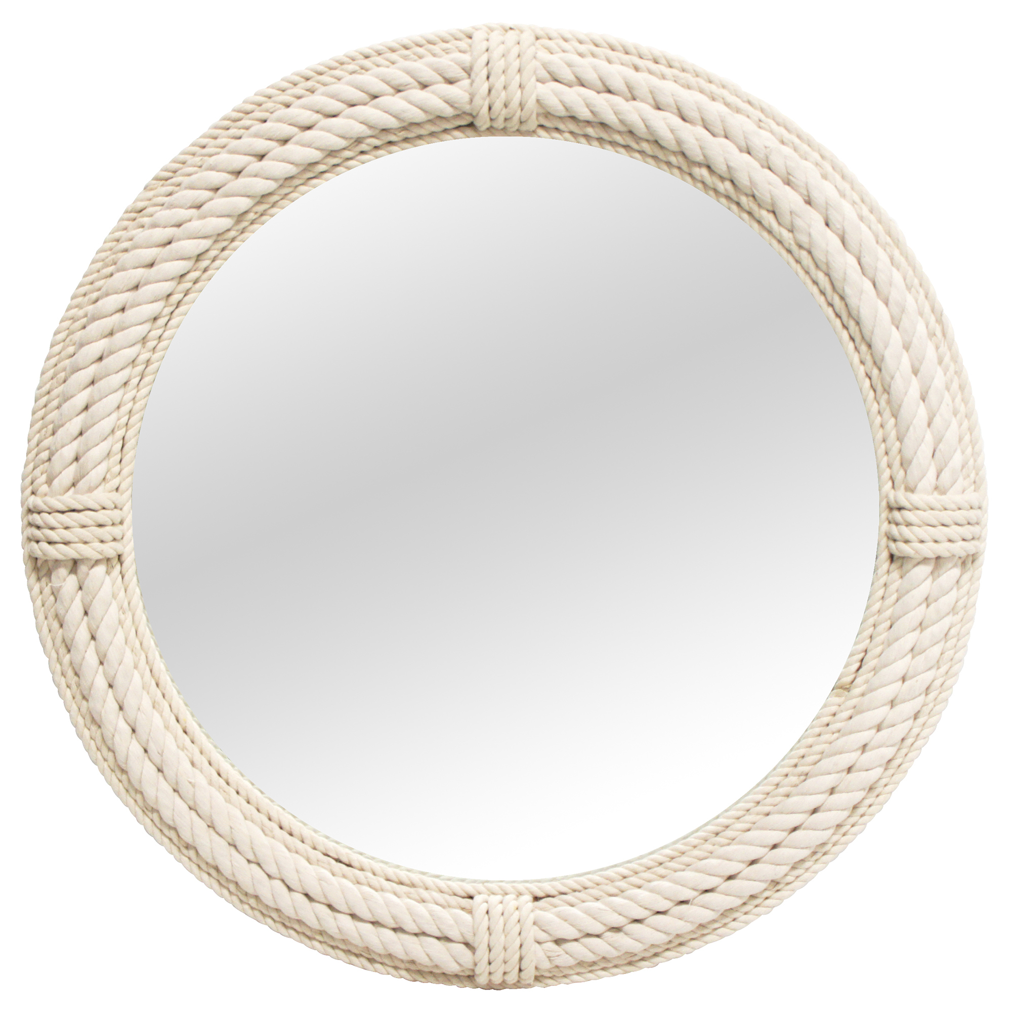 Large Nautical White Mirror With Rope Coastal Design Wall Hanging
