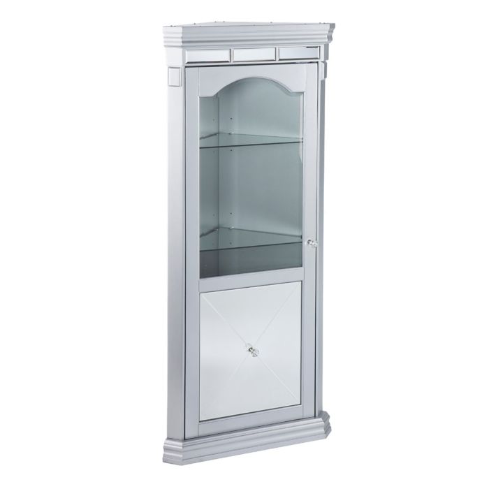 680601 Howard Miller Silver Finish Mirrored Corner Curio Cabinet