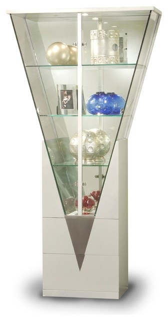 Triangular Curio Cabinet With Mirrored Interior Contemporary