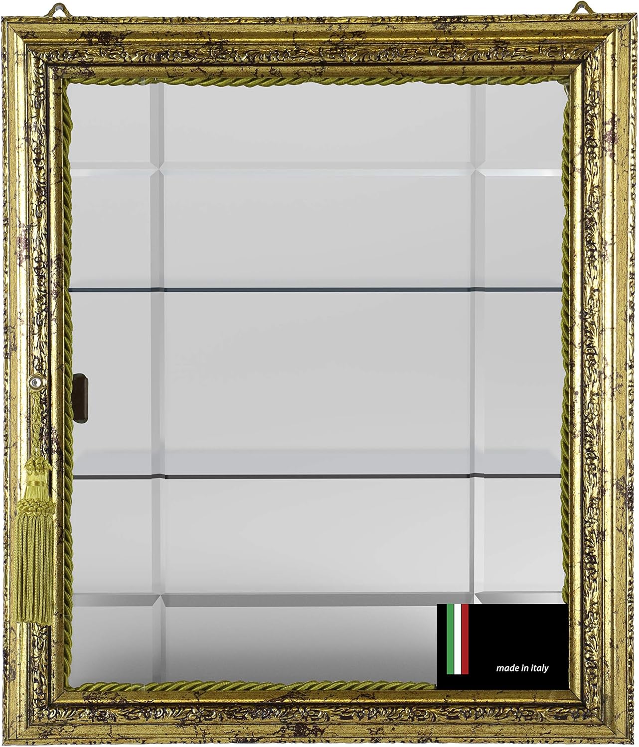 Amazon Com 3 Shelf Wall Mounted Gold Trim Curio Cabinet Made From