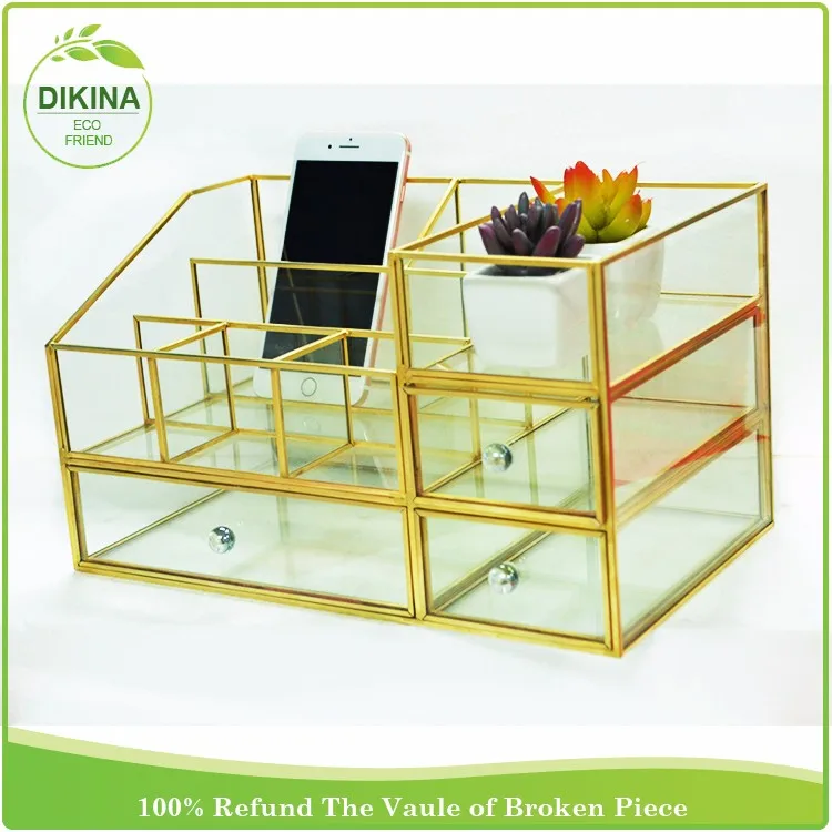 Large Geometric Glass Brass Mirror Curio Cabinet Trinket Display