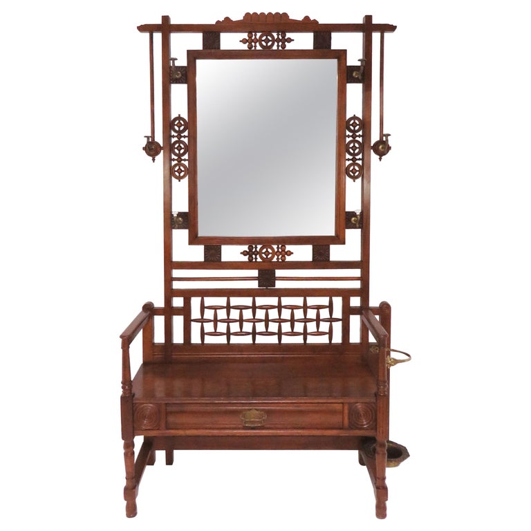 Victorian Aesthetic Movement Mirrored Hall Tree Bench Circa 1870s