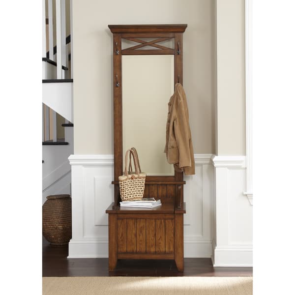 Shop Liberty Hearthstone Rustic Oak Mirrored Hall Tree Overstock