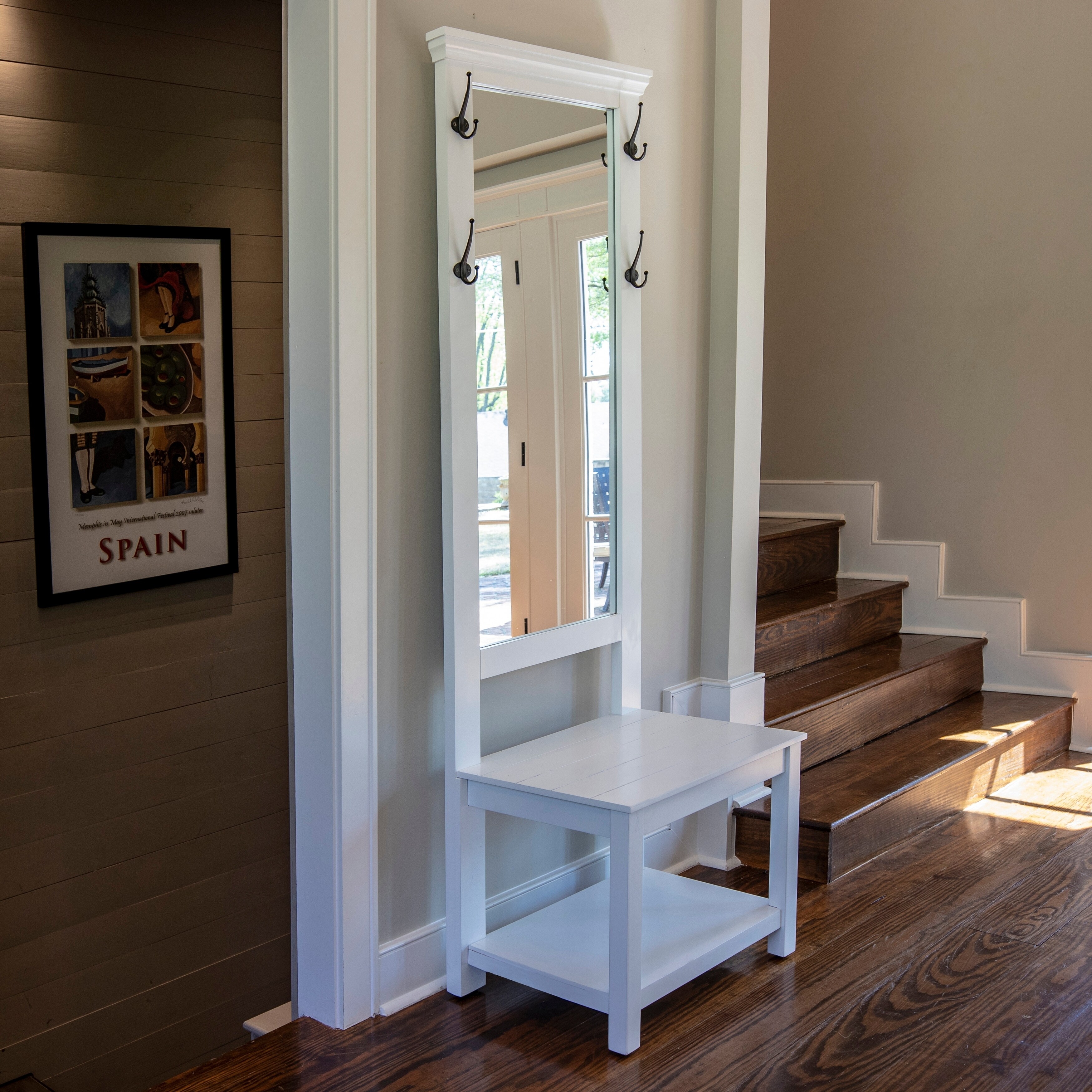 Farmhouse Hall Tree With Mirror In White Bed Bath Beyond