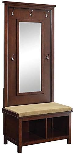 Amazon Com Cherry Entryway Hall Tree With Mirror Coat Hooks And