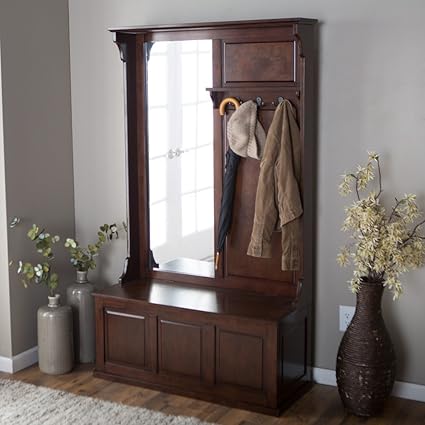 Amazon Com Espresso Entryway Hall Tree With Mirror Coat Hooks And