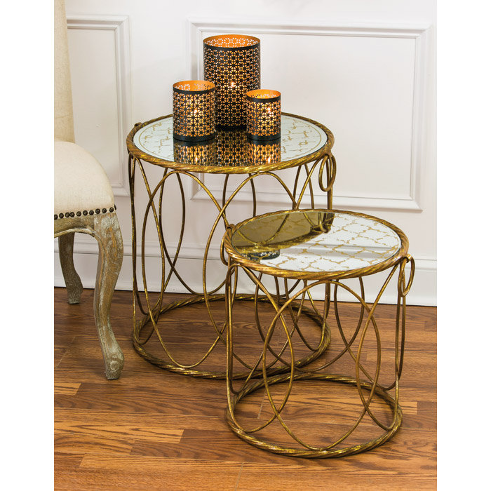 Ryla Antique Glass Nest Tables Set Of 2 Iron Mirrored Glass