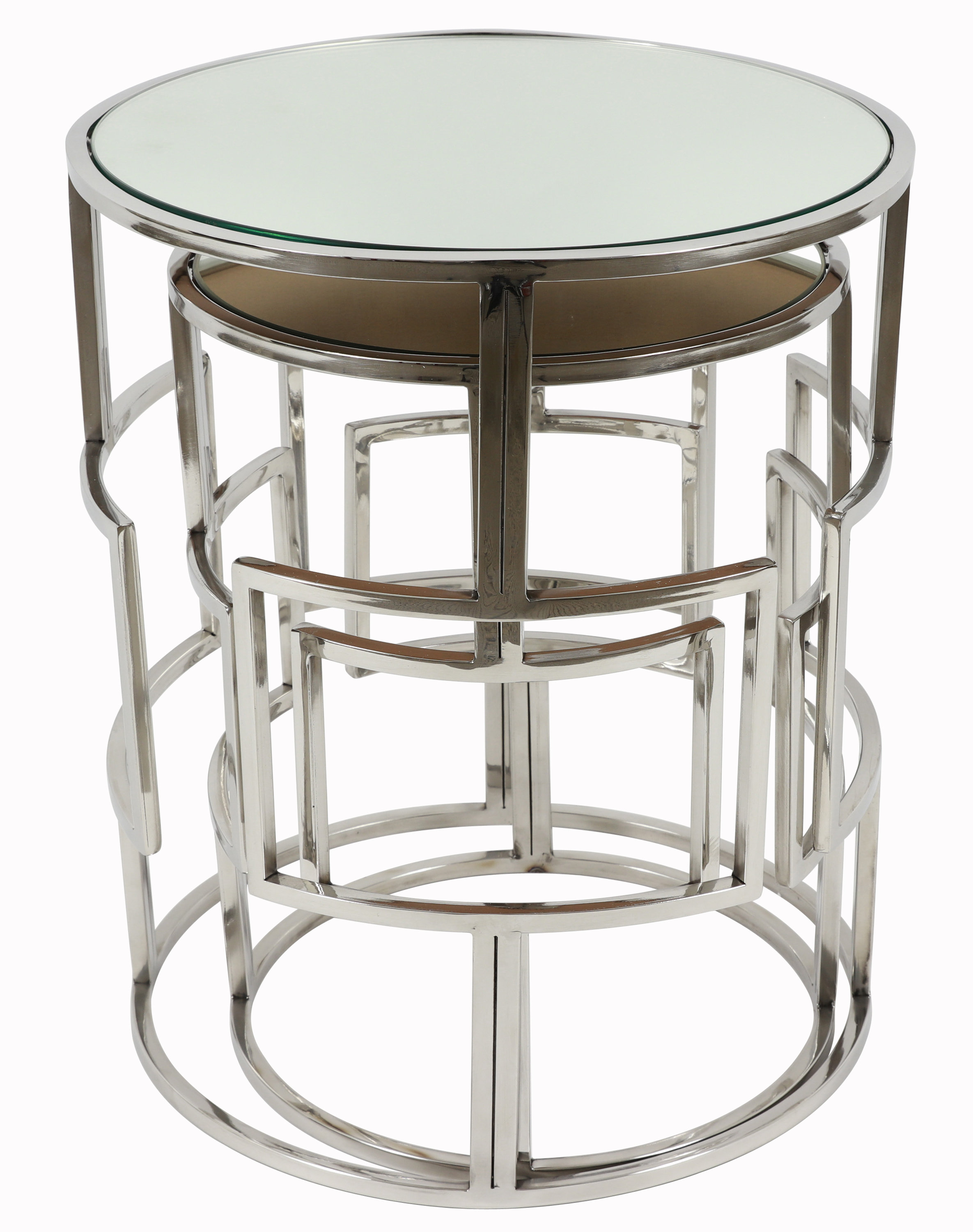 For Auction 3 Contemporary Mirrored Nesting Tables 0304 On