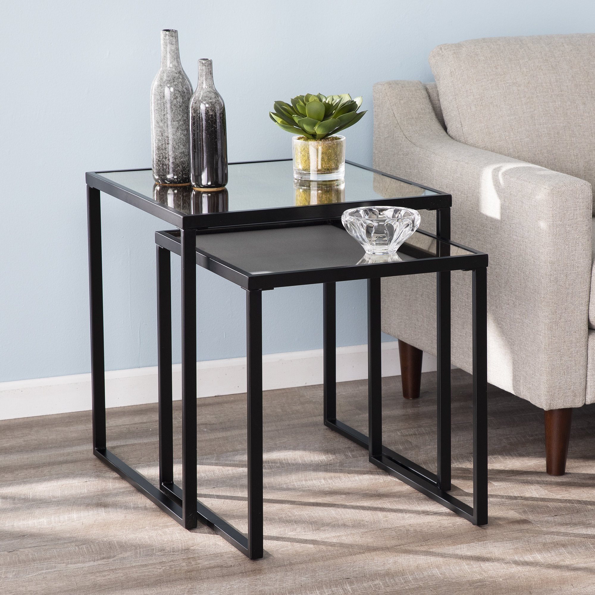 Enya 2 Piece Mirrored Nesting Table Set Color Mirror And Silver
