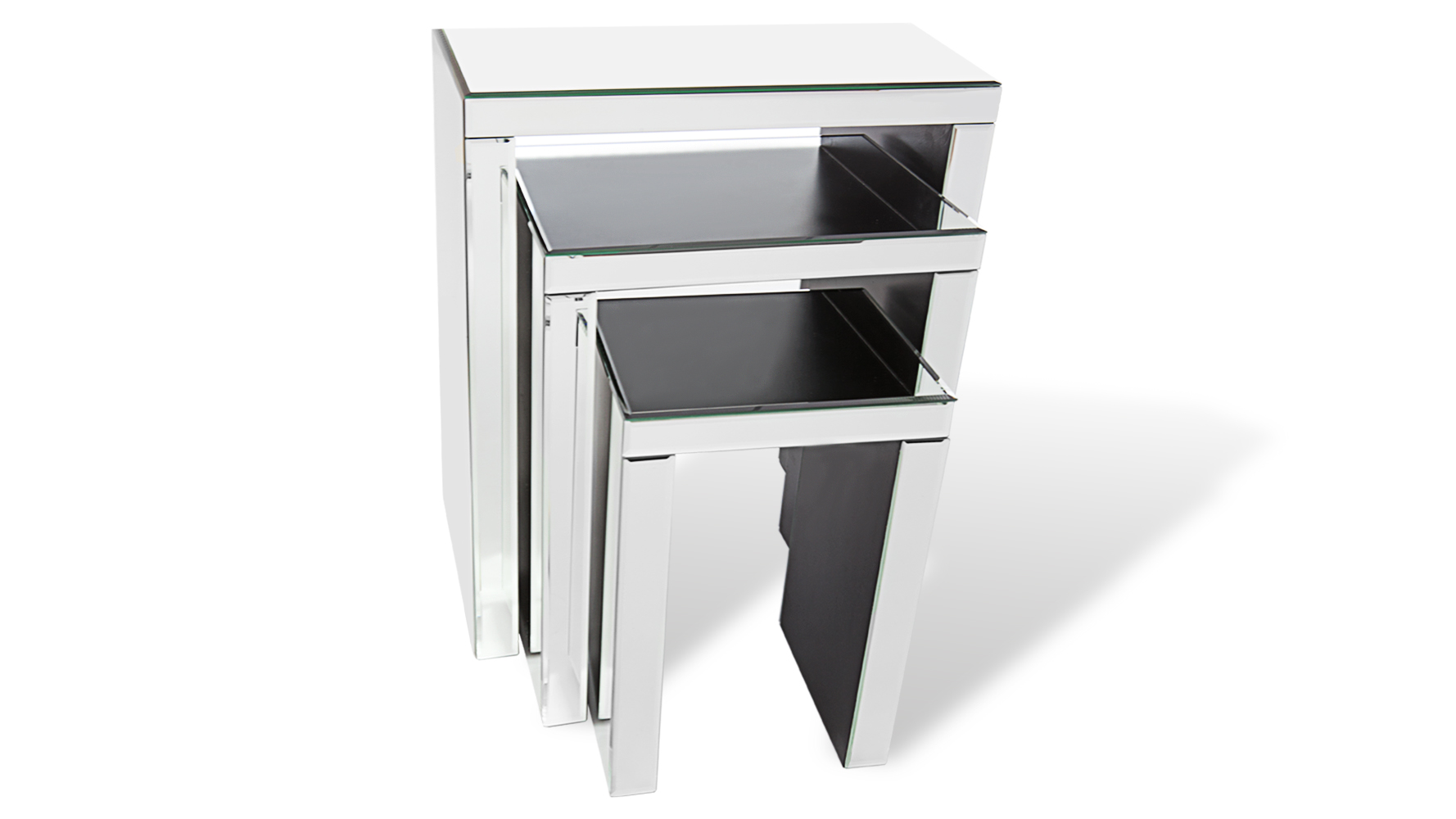 Nest Of Mirrored Tables Silver Swanky Interiors