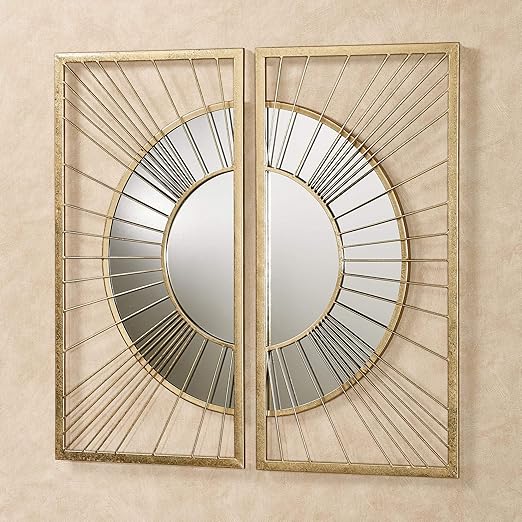 Amazon Com Sunburst Array Mirrored Wall Art Gold Set Of Two Wall Art