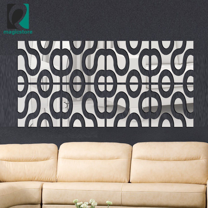 Diy Abstract Pattern Mirror Wall Stickers Adhesive 3d Mirror Wall