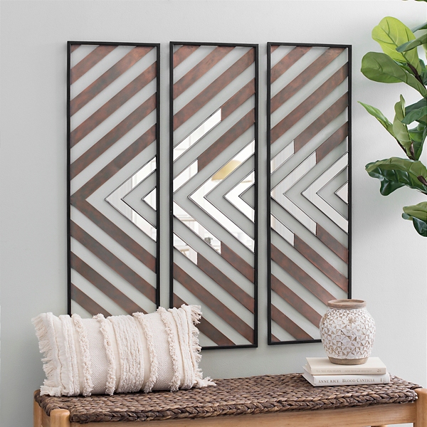 Chevron Plank Mirror Wall Plaques Set Of 3 Kirklands