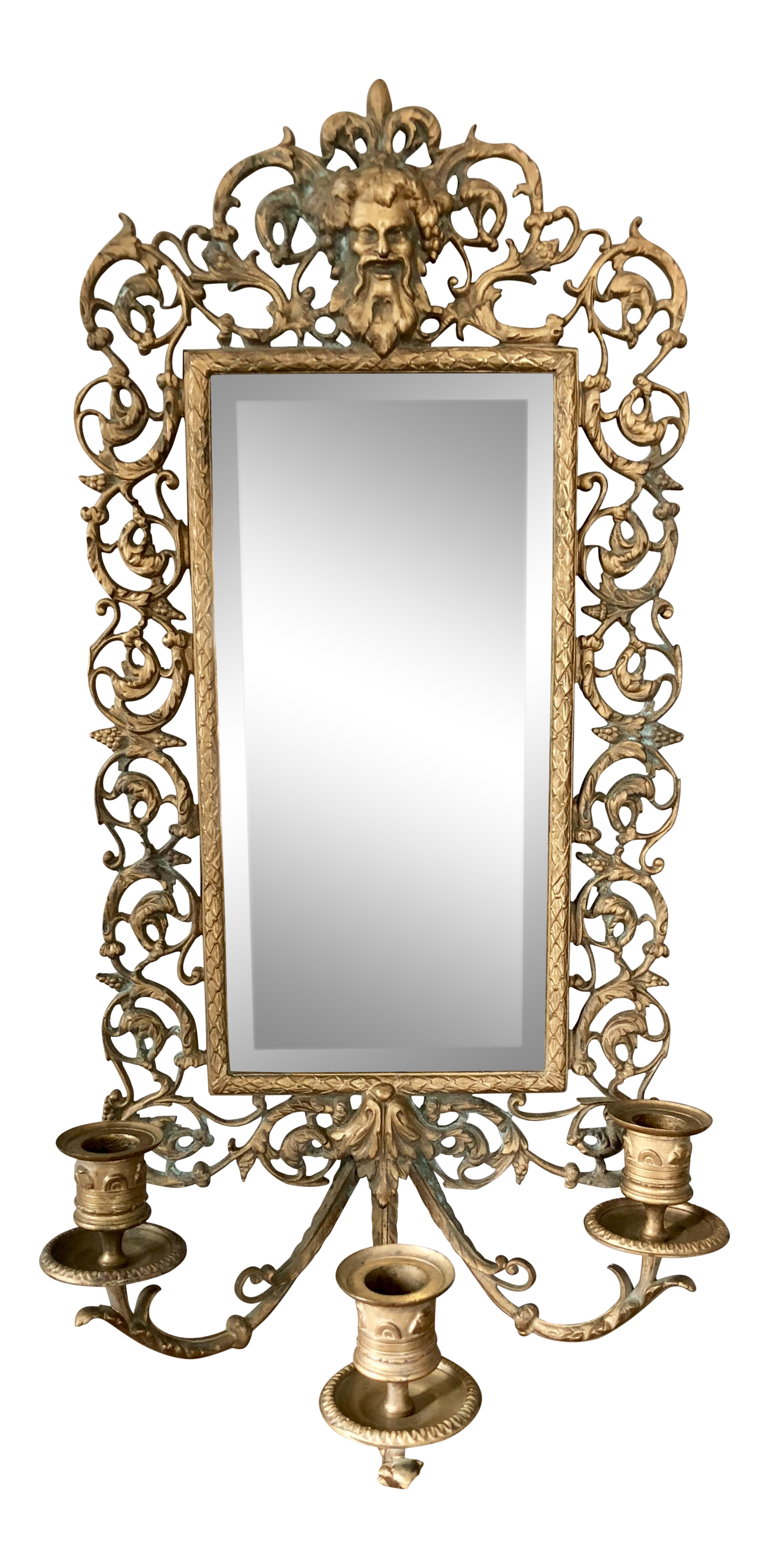Antique Brass Bacchus Three Candle Mirrored Wall Sconce Chairish
